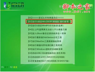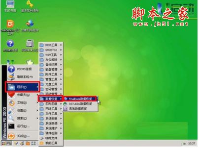 2、在上圖所示的u啟動主菜單中將光標移至“【02】運行u啟動Win2003PE增強版(裝機推薦)”并按下回車鍵即可進入win2003PE系統,隨后依次打開開始→程序→數據恢復→FinalData數據恢復即可;如下圖所示: