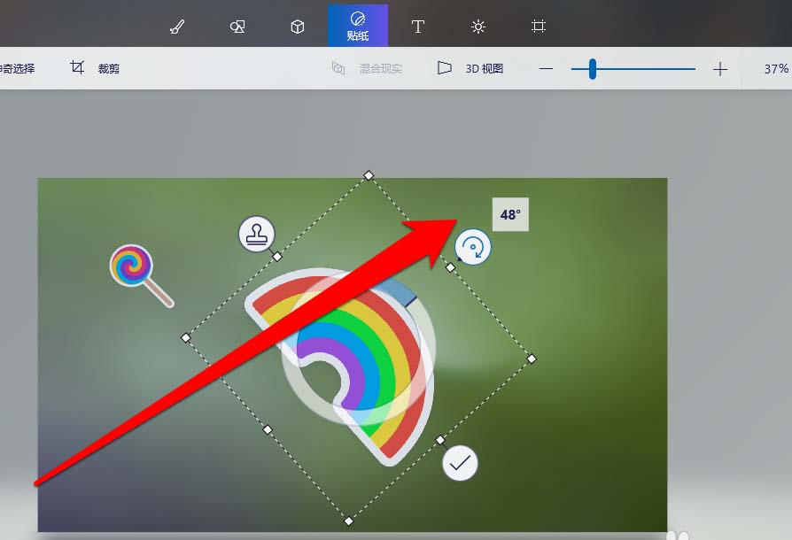 7、我們首先將貼貼紙,進行按角度旋轉。