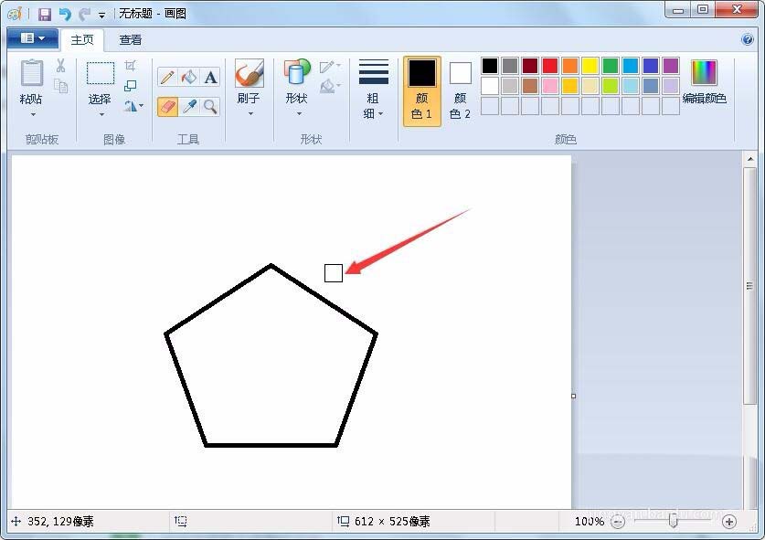 2、在畫圖中選擇橡皮擦工具,當前顯示橡皮擦的大小形狀太小,擦除現有顏色豈不是很慢又浪費時間。