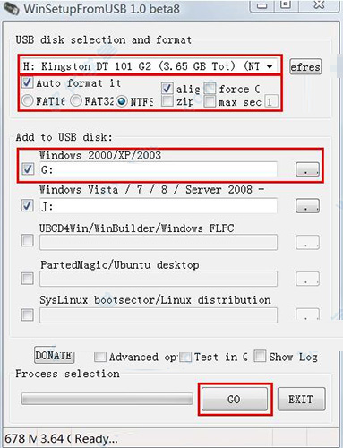 選中“Windows 2000/XP/2003”,指定安裝盤所在盤符(I386文件夾的父文件夾),可以使用DAEMON虛擬光驅把XP的鏡像加載到虛擬光盤。都設置好后,點”GO”按鈕,等待10幾~30幾分鐘,即可制作啟動盤完畢。