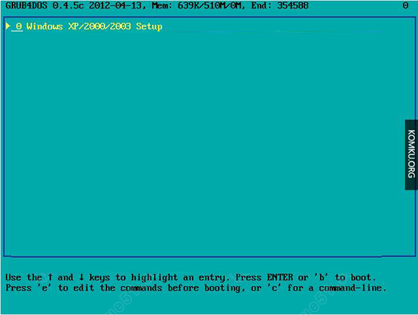 選擇“Windows XP/2000/2003 Setup”,敲回車。