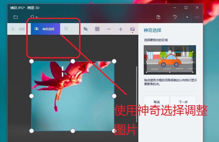 9、我們選擇畫圖工具神奇選擇,對圖片進行大小調(diào)整。
