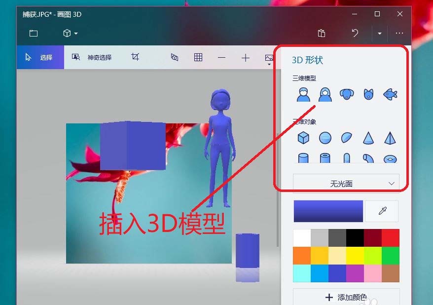 10、圖片調(diào)整后,對3D模型進行擺放,一個圖片作為背景的3D模型圖片就繪制完成了。