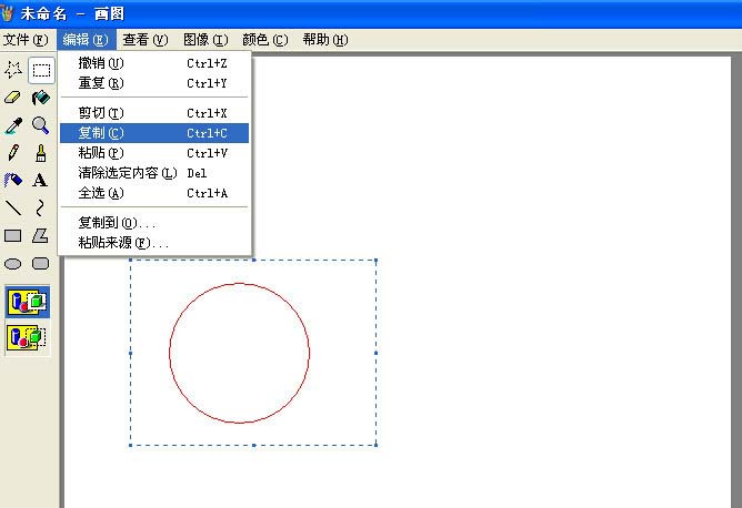 4、再在編輯菜單按粘貼或按ctrl+v粘貼一個圓形;