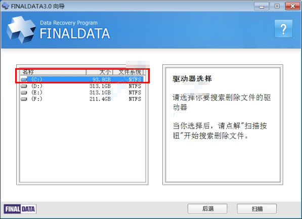 請選擇你要搜索刪除文件的驅動器