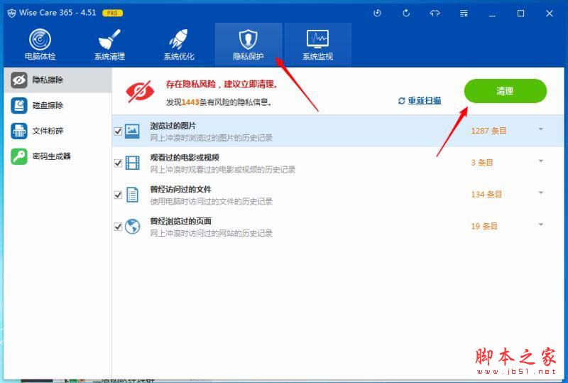 隱私保護:擦除隱私數據,對磁盤剩余空間進行擦除,對文件進行粉碎,加強密碼強度,從而保護隱私安全。