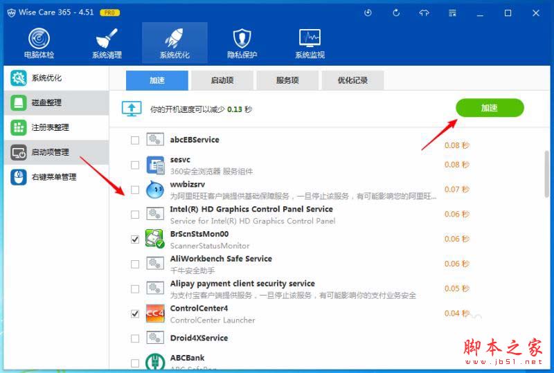 5、我們使用Wise Care 365軟件進行系統(tǒng)啟動項掃描儀后關閉不必要的啟動項可以提高系統(tǒng)的開機速度。