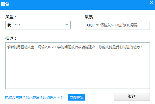 2、在跳出的界面正下方點擊“立即修復”選項,隨后就會進入驅動人生驅動診所子界面。