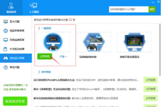 如何用驅動人生7自動修復游戲運行異常?用驅動人生7自動修復游戲運行異常的方法: