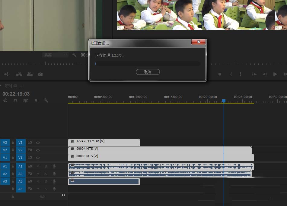 4、如圖就在同步了,同步就是拍攝中間部分斷的,它都能給你同步到一起,
