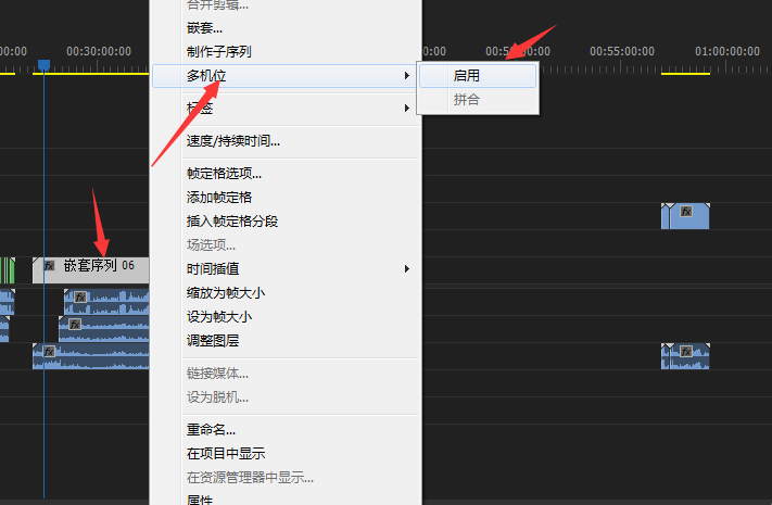 6、然后在右擊素材,選擇多機位選擇啟用,