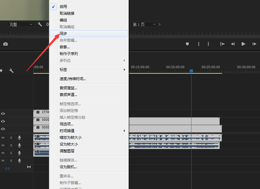 5、同步后,右擊選擇嵌套,嵌套之后就變成一條軌道上面的素材,