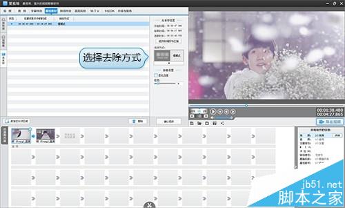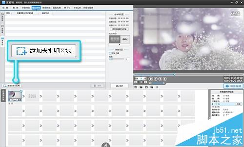 如果我們想保留整個視頻畫面,可以用去水印的方法去除字幕。只需切換到“疊加素材”面板,選擇“去水印”選項(xiàng)卡,點(diǎn)擊“添加去水印區(qū)域”按鈕,設(shè)置去水印區(qū)域和時間段。