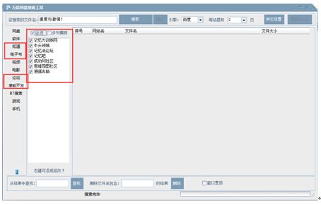 軟件會根據用戶所選的搜索引擎,將搜索結果按照順序排列好,用戶還可以根據自己對文件的要求,按照文件大小規格等對搜索結果進行篩選。