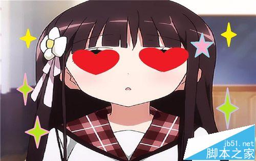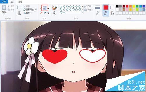 4、用鼠標在女孩的兩只眼睛上分別畫上心形,如圖所示,畫筆顏色選為紅色。