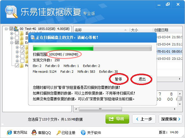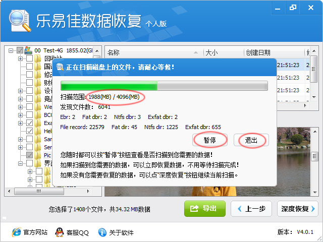 您隨時可以點擊“退出”按鈕終止當前的掃描。