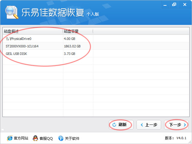 如果您要恢復的是移動硬盤、U盤、內(nèi)存卡等移動存儲設(shè)備,且設(shè)備列表里沒有您需要恢復的存儲設(shè)備,請重新拔插您的移動存儲設(shè)備,然后點擊“刷新”按鈕。