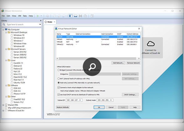 借助更強大的 IPv6 支持(包括 IPv6 到 IPv4 網絡地址轉換(6to4 和 4to6)),用戶可以創建比以往任何時候都更加復雜的網絡拓撲。Workstation 12 Pro 虛擬網絡編輯器可用于添加和刪除 IPv4 或 IPv6 網絡,并創建自定義的虛擬網絡連接配置,因而是適用于測試和演示環境并且不影響 PC 網絡配置的理想產品。