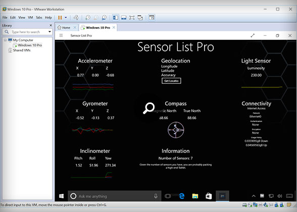 借助 Workstation 虛擬平板電腦傳感器,充分利用基于 Intel 的最新平板電腦。將最新的 Microsoft Surface 平板電腦與 Workstation 的虛擬加速計、陀螺儀、指南針和環境光線傳感器結合使用,可以使虛擬機中運行的應用在用戶移動、旋轉和搖動平板電腦時進行響應。無論您是使用筆記本電腦、平板電腦還是臺式電腦,Workstation 12 Pro 都支持最新的 Intel 64 位 x86 處理器,包括新的 Broadwell 和 Haswell 微架構,可以實現最高的性能。