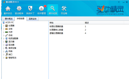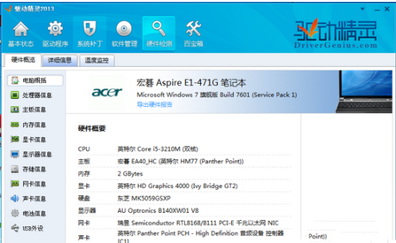 在硬件預覽頁面,我們能看到我們電腦的詳細配置,任何硬件設施都能檢測到。