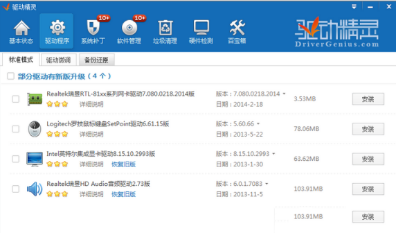 操作系統補丁沒打齊?缺少各種.Net、VC運行庫致使程序無法運行?驅動精靈可讓您的系統安全穩定,功能完備。