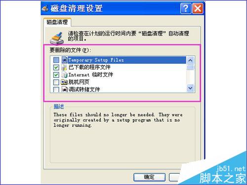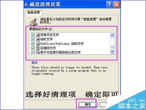 4、開始運行輸入 cleanmgr /sageset:99 確定后,彈出”磁盤清理設置“,可以選擇要清理的項目