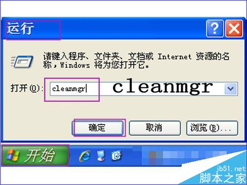 1、首先我們打開開始--運行,輸入命令 cleanmgr 確定