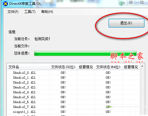 2、修復好后單擊“退出”