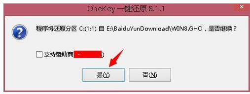 4、確定還原備份分區,是否繼續還原備份操作。如果要操作就點擊【是】