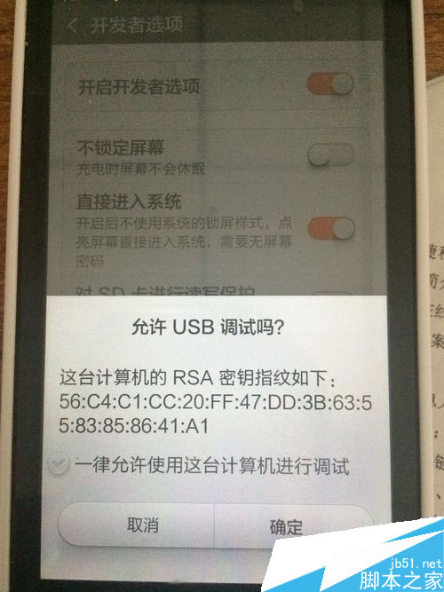 2:打開手機-設置-開發者選項-USB調試,把USB調試調為打開狀態。