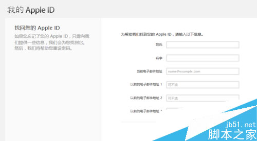 2點擊官網首頁右下角的【找回您的apple id】選項,進入密碼找回界面,如下圖所示。