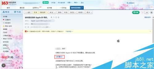 2登陸郵箱找到該郵件,在郵件正文內可以看到【立即重設】的超鏈接按鈕,如下圖所示。