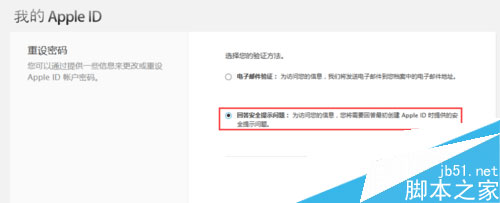 在選擇驗證方式界面里也可以選擇【回答安全提示問題】來獲取重新設置密碼的權利,如下圖所示。
