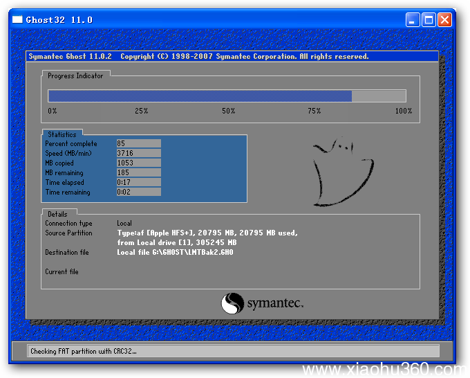 2、重新啟動電腦后會自動進入小虎一鍵還原界面進行自動系統(tǒng)備份。