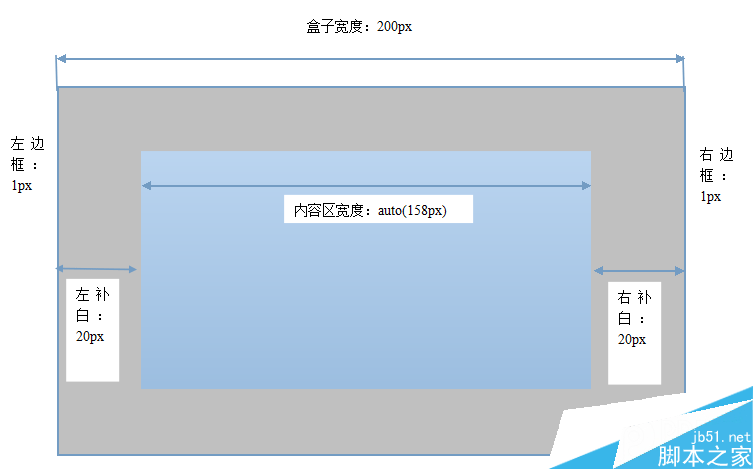 這意味著,如果我們設置一個寬度為200px,而實際呈現的盒子的寬度可能會大于200px(除非沒有左右邊框和左右補白)。這可能看起來比較怪,CSS設置的寬度僅僅是內容區的寬度,而非盒子的寬度。同樣,高度類似。