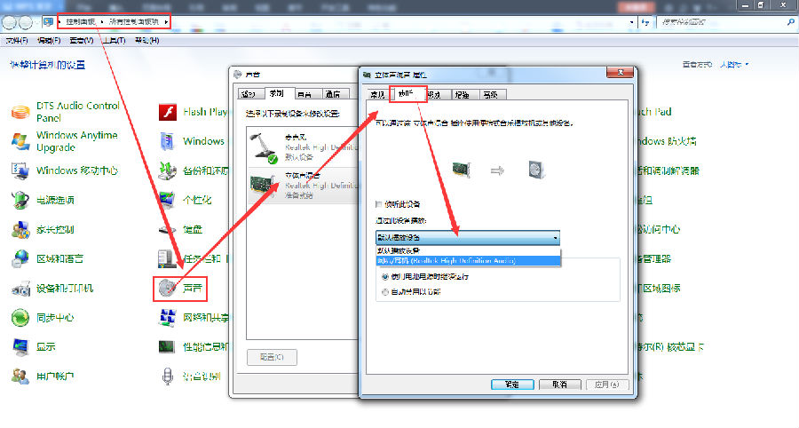 首先檢查聲卡設置,打開控制面板,點“聲音”選擇“錄音”菜單,雙擊立體聲混音,在立體聲混音屬性對話框的偵聽中選擇如下圖所示的選項,然后點擊應用——確定即可。