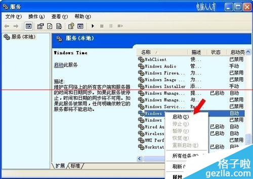 2、找到Windows Time→啟動(啟動類型已經處于自動狀態)