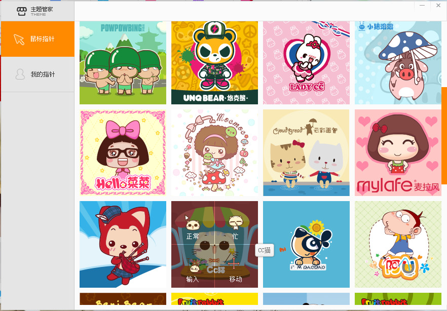 2、然后我們再主題中可以看到“鼠標指針”這個選項卡里面有很多指針,都是大家喜歡的卡通人物大家可以選擇自己喜歡的下載使用