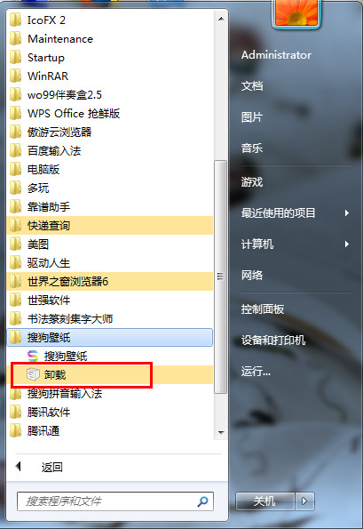 方法二:在開始菜單中找到搜狗壁紙點擊卸載