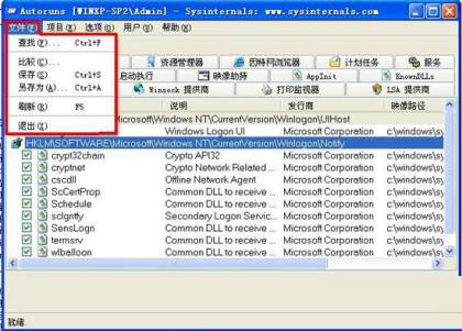 如果以前在機器正常時保存了AUTORUNS的日志,而當前感覺機器明顯有問題,可以通過以下辦法簡單確認惡意軟件可能添加的自啟動項: