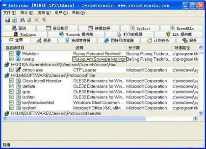 “啟動執行”:在系統登陸前啟動的本地映像文件(即WINDOWS映像文件的對稱)及自啟動項的情況。形象地理解一下,就是貌似瑞星的系統登陸前掃描這樣的自啟動項。