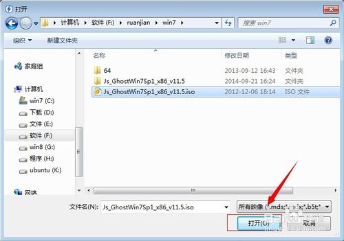 3、打開的對話框,尋找要打開的光盤鏡像文件。