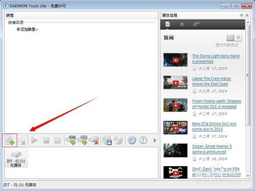 2、打開daemon tools lite,點擊左下角的添加命令。