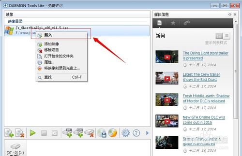 5、然后在打開的光盤鏡像文件上右擊--載入命令。