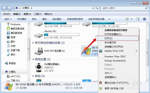 6、然后打開我的電腦,可以看到光盤鏡像文件已經被載入,然后右擊--打開命令。