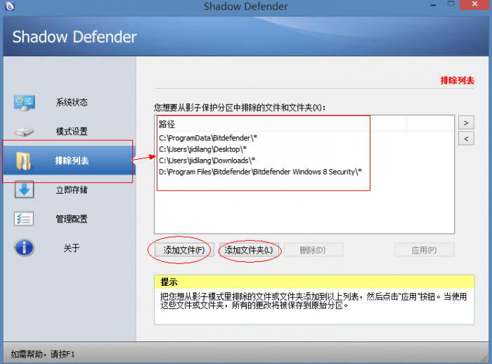 三、Shadow Defender的排除列表