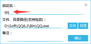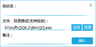 首先,我們拖動我們桌面上的快捷方式,例如“QQ”到程序界面處。程序將彈出以下界面: