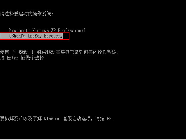 由于之前所設定的啟動方式為系統菜單,所以在系統菜單選擇中,則會在菜單中多出"UShenDu OneKey Recovery"選項,如下圖所示: