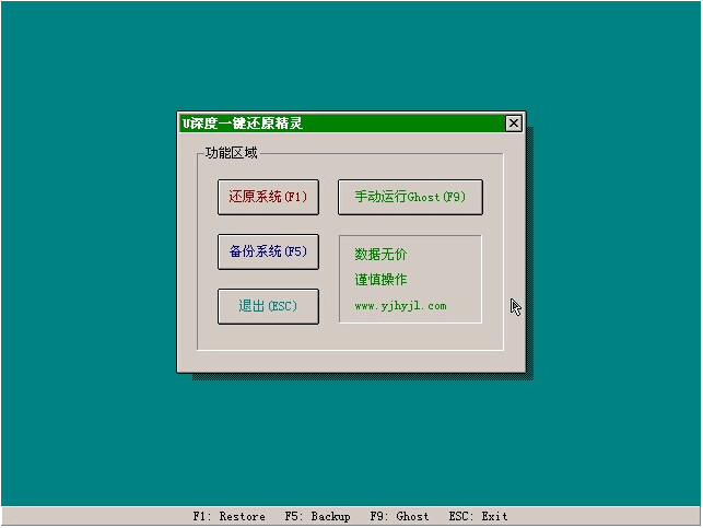 將光標移動到此處后,按下回車鍵即可進入到u深度一鍵還原精靈啟動菜單模式的操作界面,我們可根據需要進行對應的操作,如下圖所示: