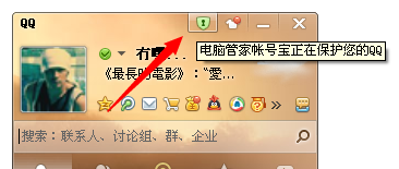 2、窗口正上方顯示電腦管家帳號寶正在保護您的QQ